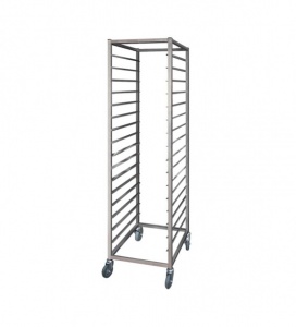 Шпилька на колесах из нержавеющей стали марки AISI 430, 16 уровней для 16 противней (600х400), каркас труба 25х25, направляющие изготовлены из листовой нержавеющей стали, колесные опоры диаметром 75 мм колеса, 2 с тормозом.