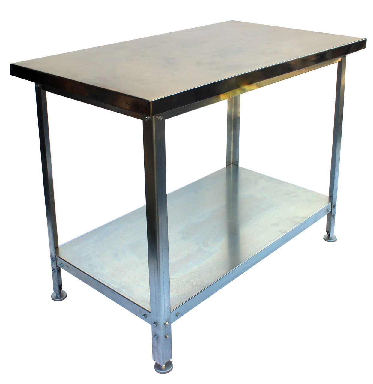 Столешница изготовлена из нержавеющей стали AISI 430 и усилена подложкой из ламинированной ДСП. Каркас разборный, собирается с помощью болтов.